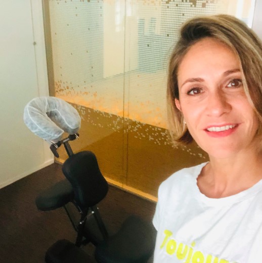 De courte durée, la séance se pratique sur une chaise ergonomique.